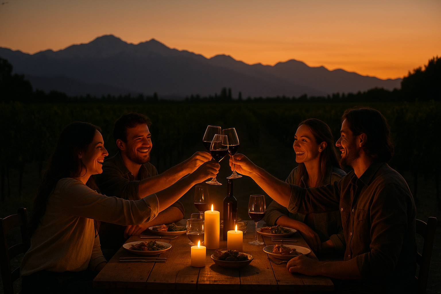 Dessert wines — like late-harvest Torrontés or fortified Malbec — wrap the evening in gold.
